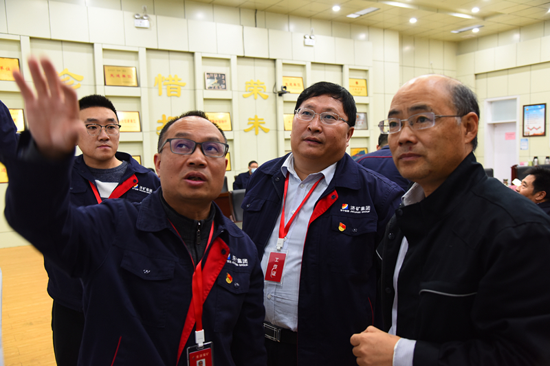 在43上03智能化综采工作面,刘宗顺就工作面超前架挪移、工作面架间和煤机喷雾、提升运输、顶板管理、通风及瓦斯治理等专业问题与现场人员进行了交流并给予指导,并对该矿在复杂的地质条件下依然出色地完成各项安全生产经营指标而倍感欣慰。