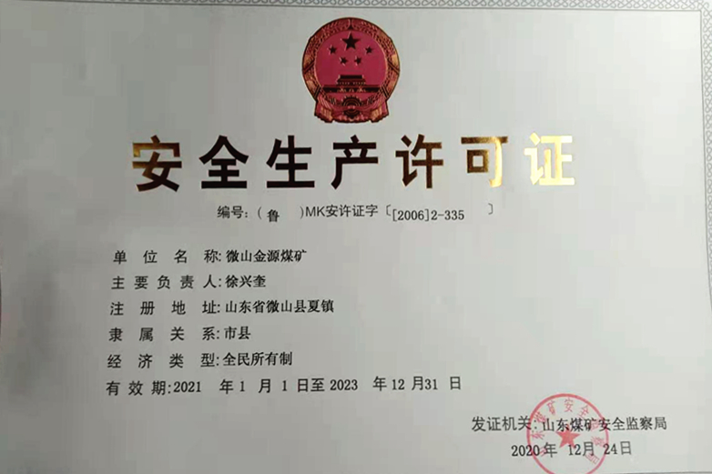 日前,williamhill中国官方网站顺利通过山东煤矿安全监察局审核,取得了新《安全生产许可证》。